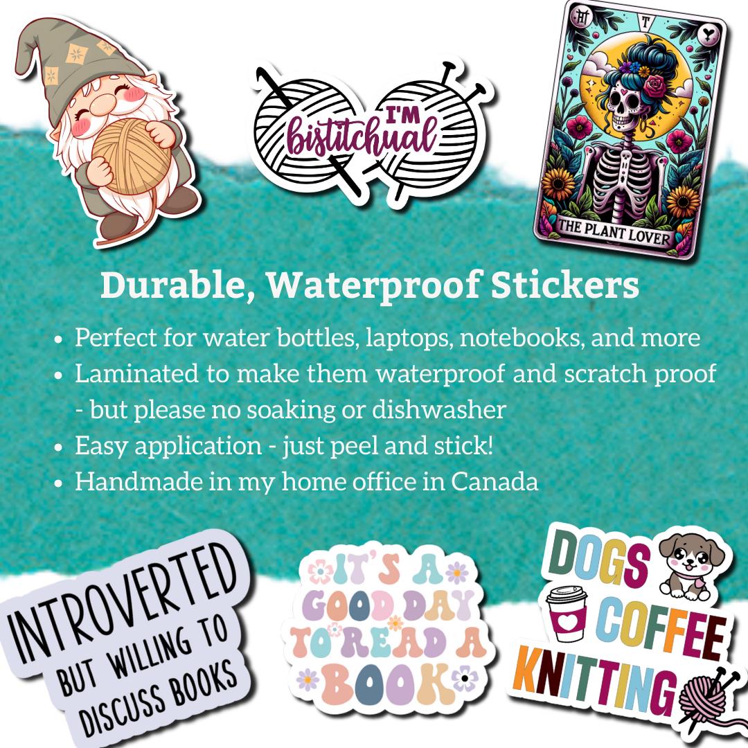 Our yarn themed stickers are perfect for laptops, notebooks, bullet journals, lockers, cars, water bottles and more! They make the perfect gift for the yarn lover in your life